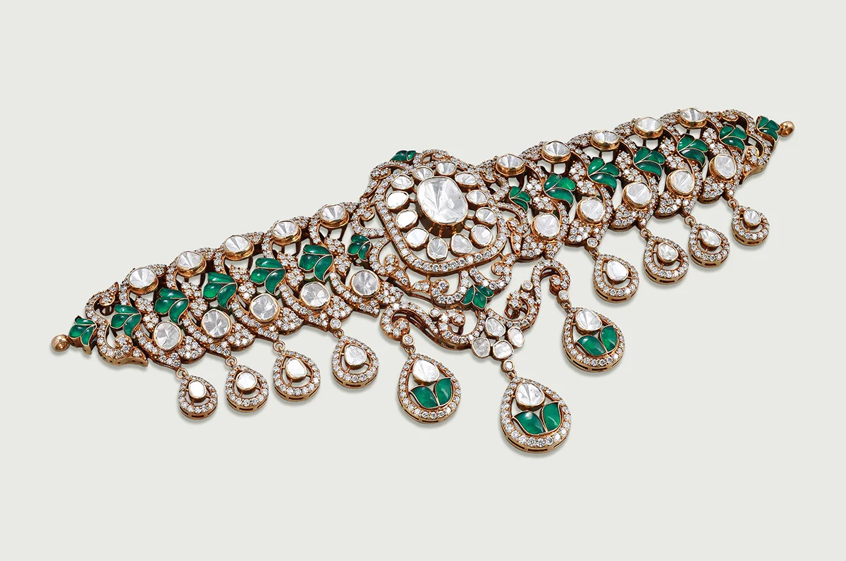 With open-setting Polki drops adding gentle movement, this choker stands as a statement of grandeur and artistry.