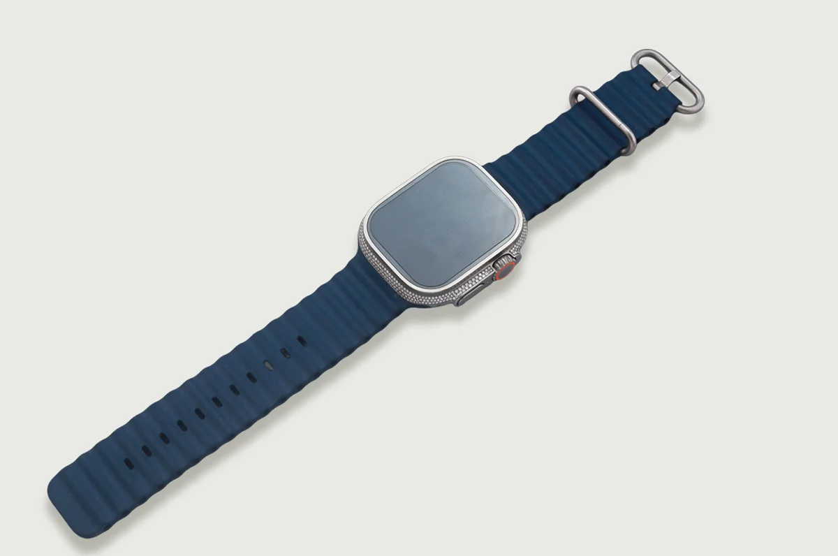 The Apple Watch is reimagined with a custom pavé-set diamond bezel, each stone placed with architectural precision along the frame. The result is a seamless union of modern hardware and fine jewellery craftsmanship; refined, sculptural and unmistakably elevated.