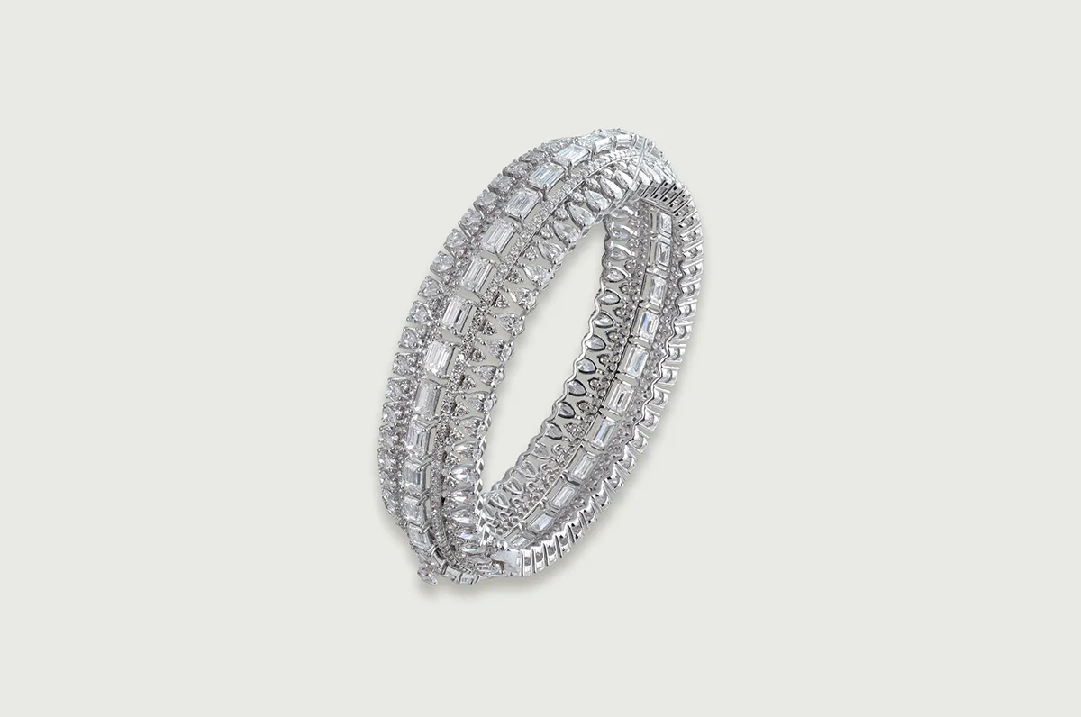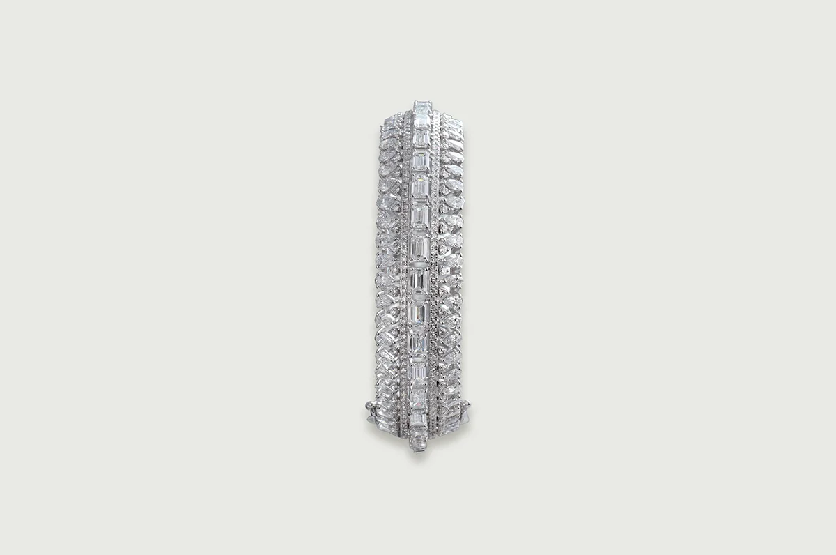 A rhythmic composition of mixed diamond shapes creates movement across the wrist; an elevated reinterpretation of the classic tennis bracelet. Playful yet polished, it transitions effortlessly from ceremony to celebration.