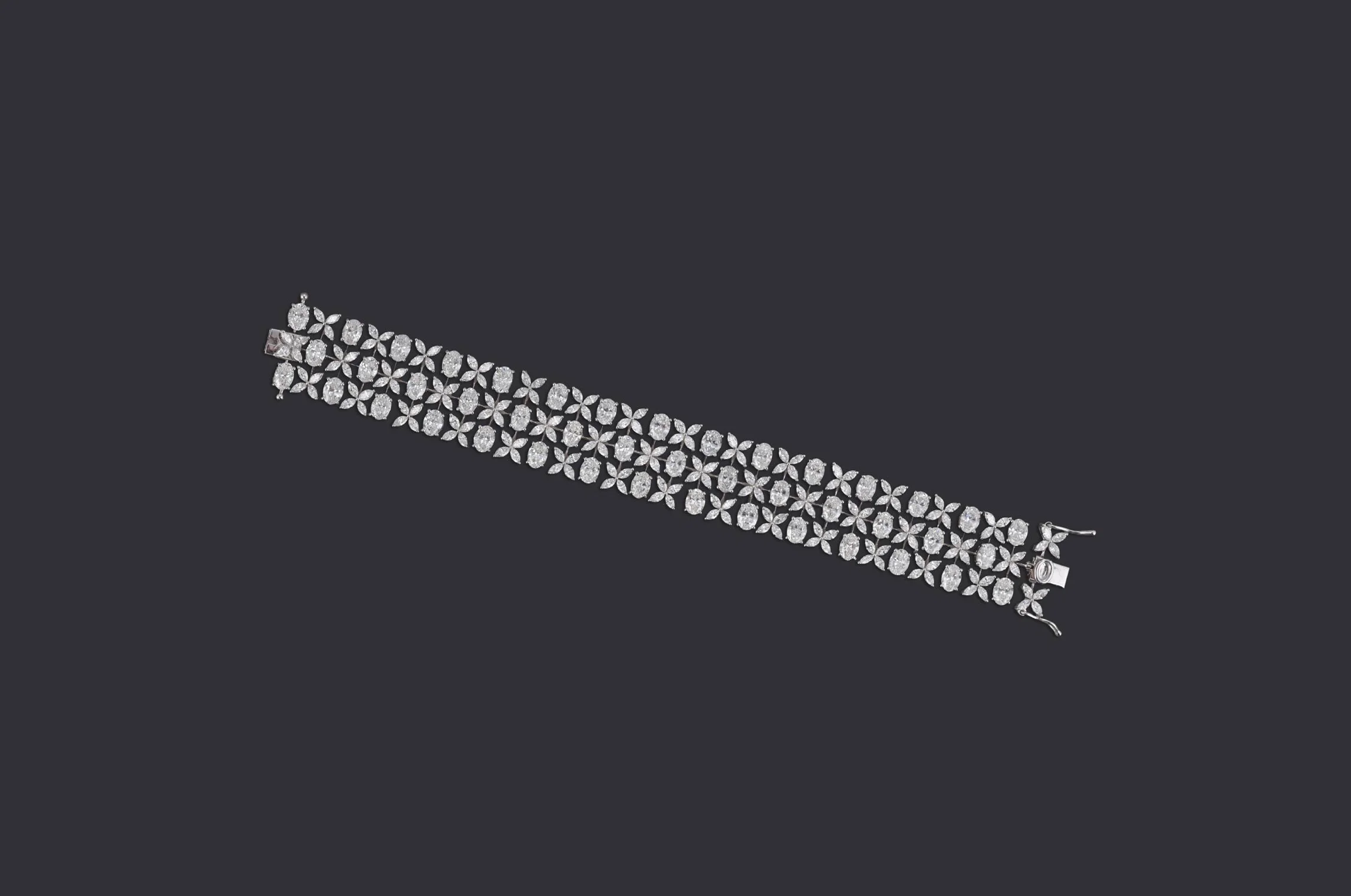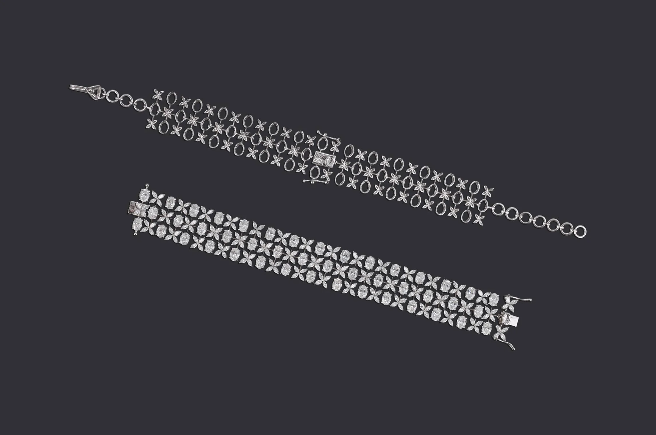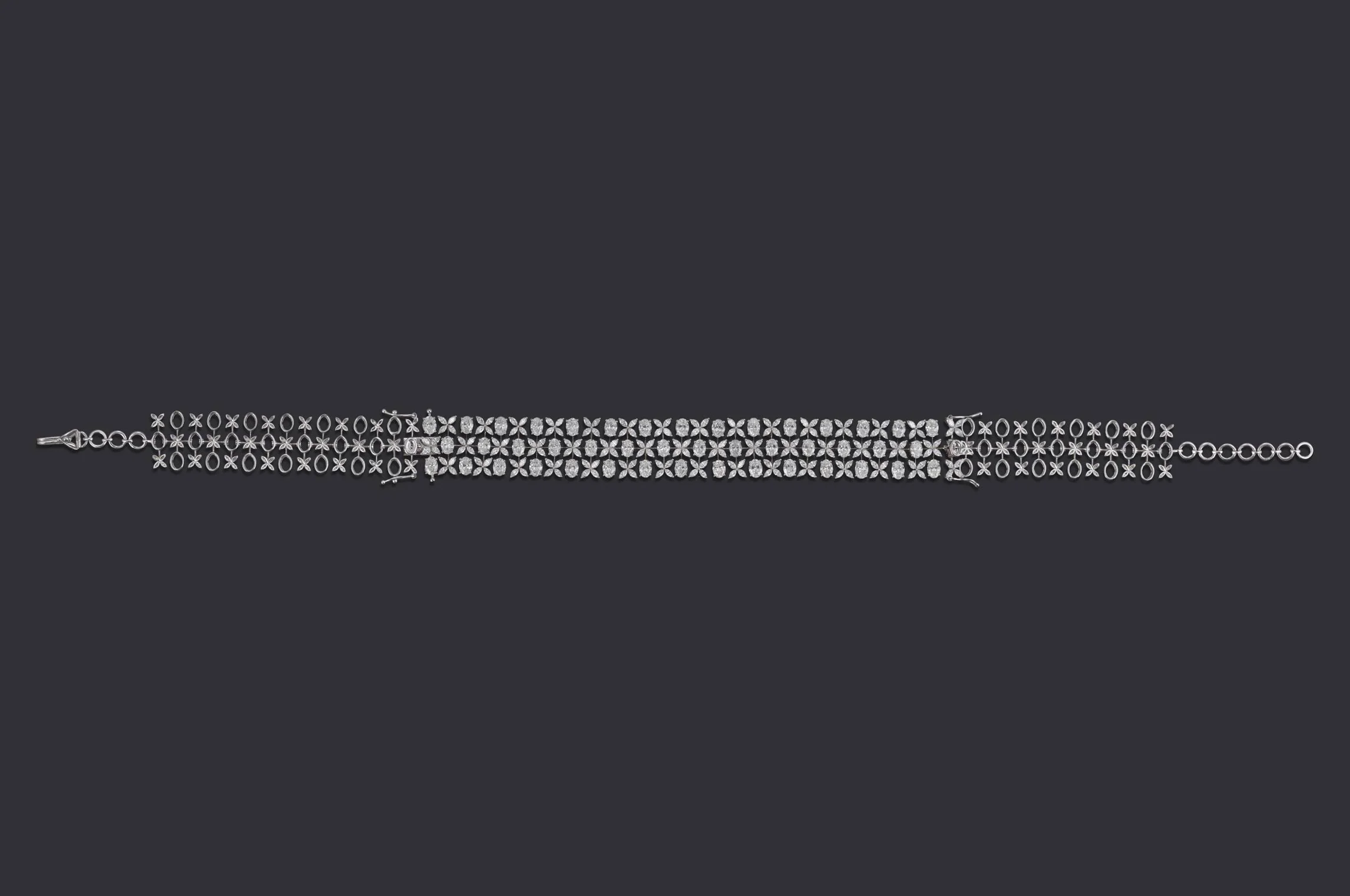 Crafted for versatility, this masterpiece transforms from a diamond-encrusted choker into a wide, ornate bracelet. Featuring intricate floral and geometric motifs in white gold, the piece is designed to adapt to a bride’s evolving journey — from wedding day grandeur to a lifetime of celebrations. A true testament to wearable luxury.