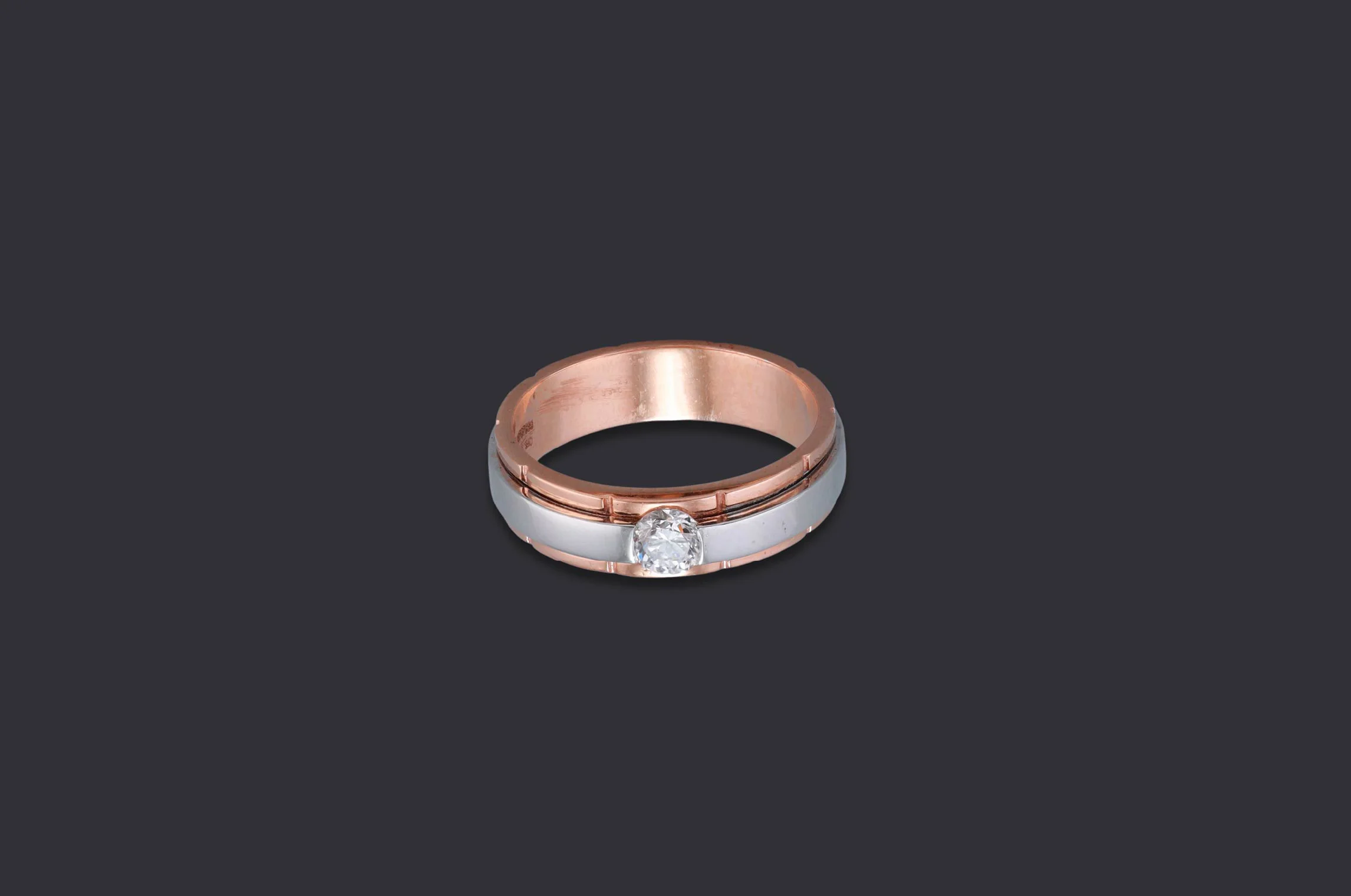 A contemporary design in rose and white gold, set with a single round lab-grown diamond at its heart. The dual finish gives this piece a versatile, modern edge.