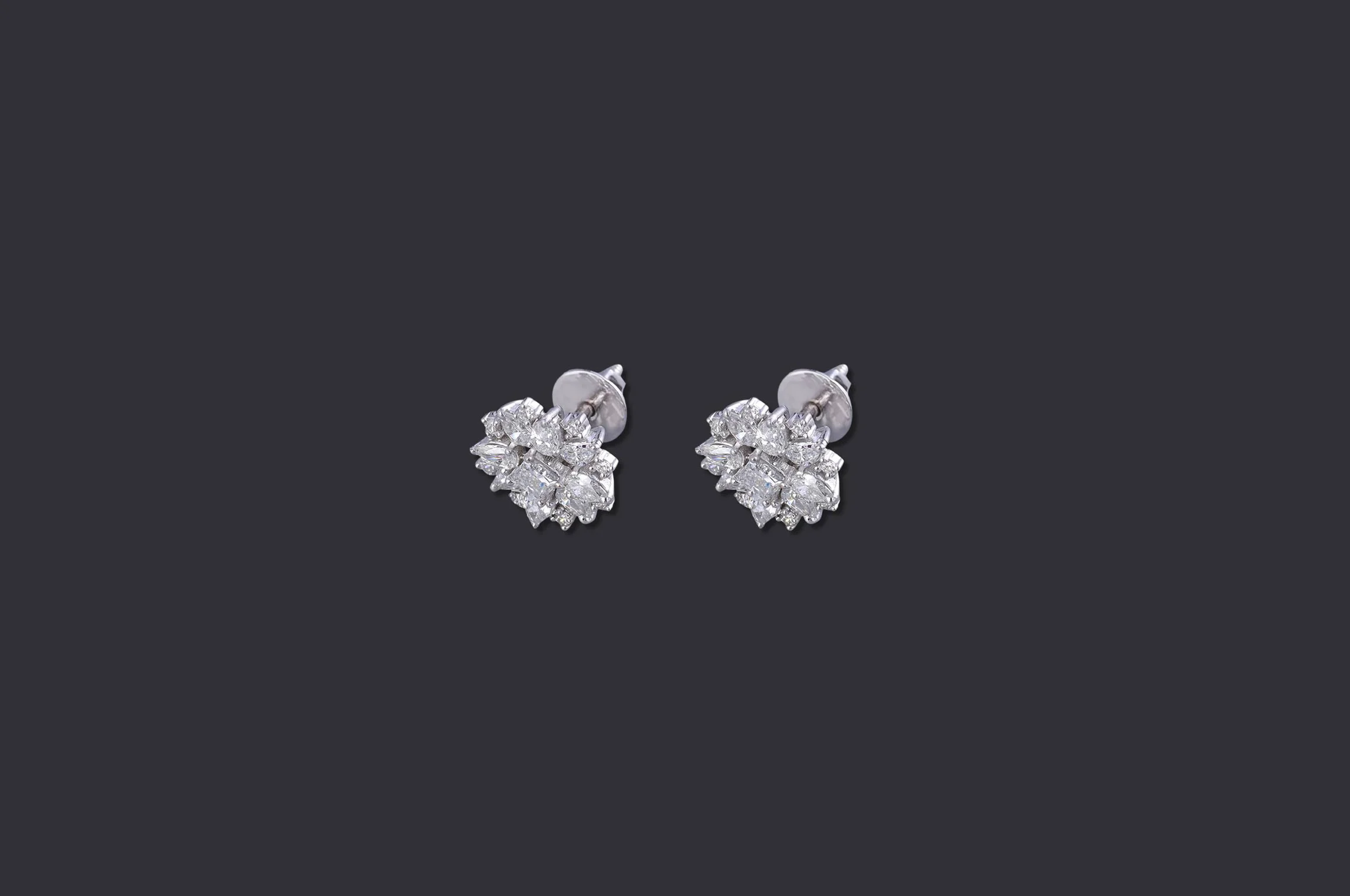 A bloom of brilliance; these studs combine marquise, pear and round diamonds in a floral-inspired cluster. A versatile pair that transitions seamlessly from festive soirées to refined celebrations, radiating timeless femininity.