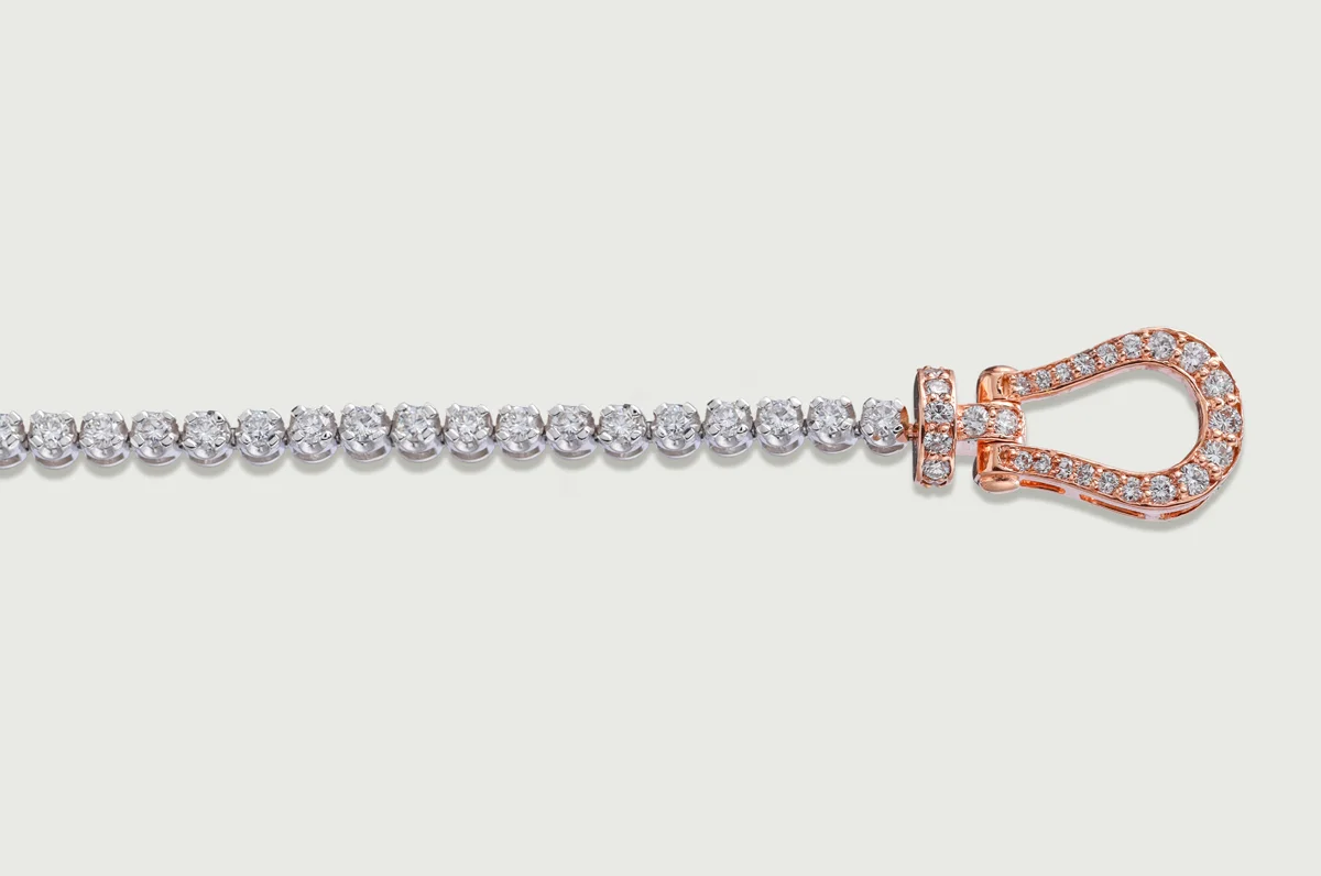 A seamless row of pear-cut lab-grown diamonds rests in a delicate line, creating a soft, fluid silhouette around the wrist.