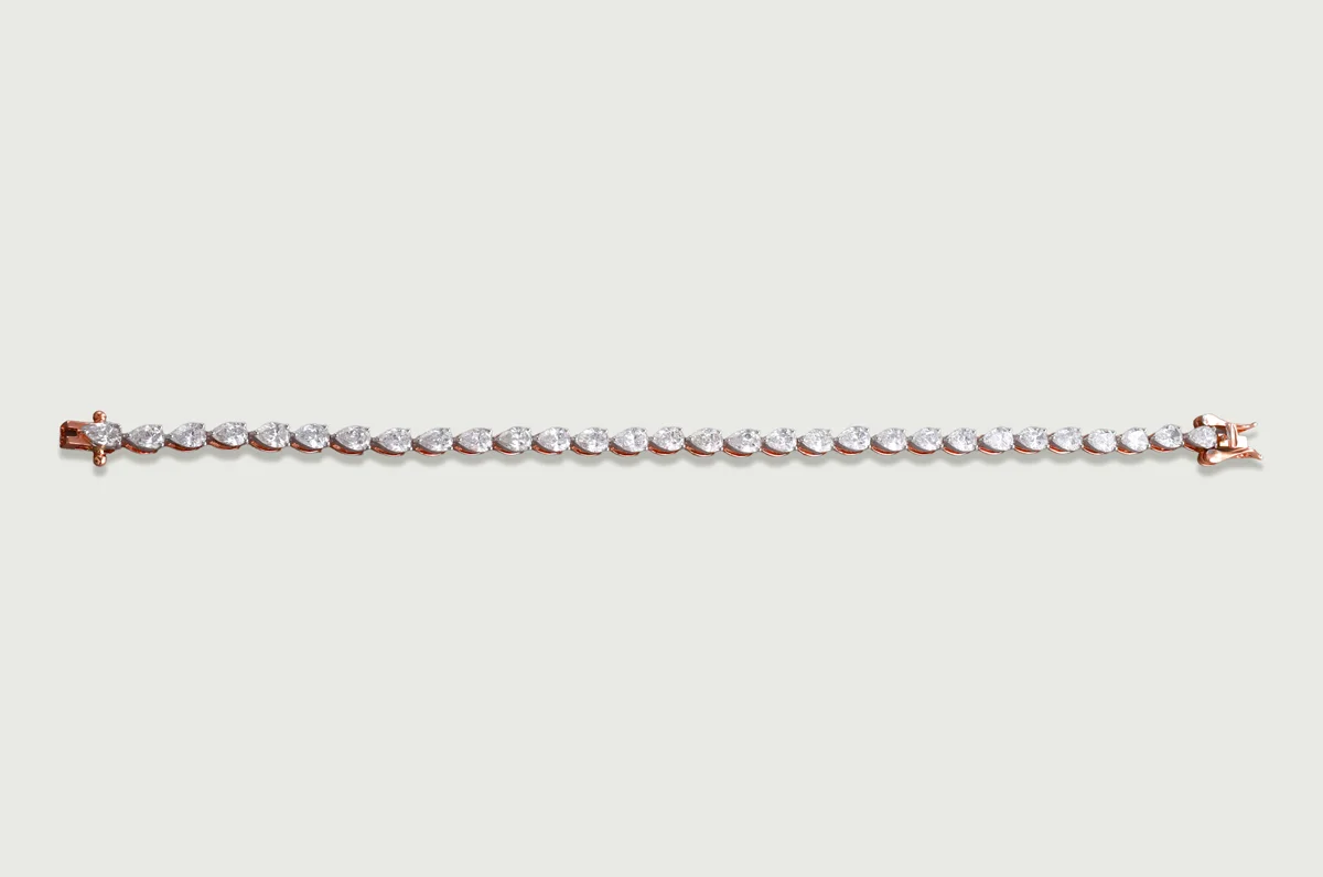 A seamless row of pear-cut lab-grown diamonds rests in a delicate line, creating a soft, fluid silhouette around the wrist.